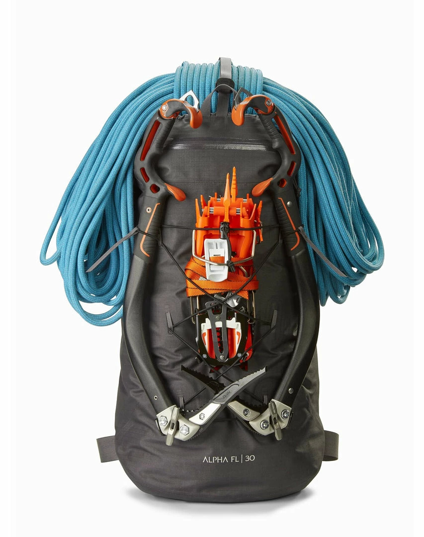 Ultralight and highly weather-resistant, the Arc’teryx Alpha FL 30 climbing pack is well-suited to fast-and-light alpine, ice and rock routes, offering full functionality at a mere 20.6 oz. (585 g).