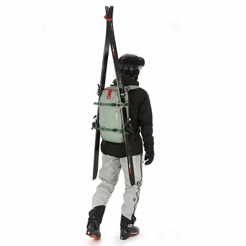 The CALGARY 18 REACTOR avalanche airbag backpack includes the latest technologies while limiting its impact on the environment. The entire design process has been overhauled to create the first ever eco-designed avalanche airbag backpack made primarily with recycled fabrics and designed with a REACTOR dual airbag system made and assembled in France.