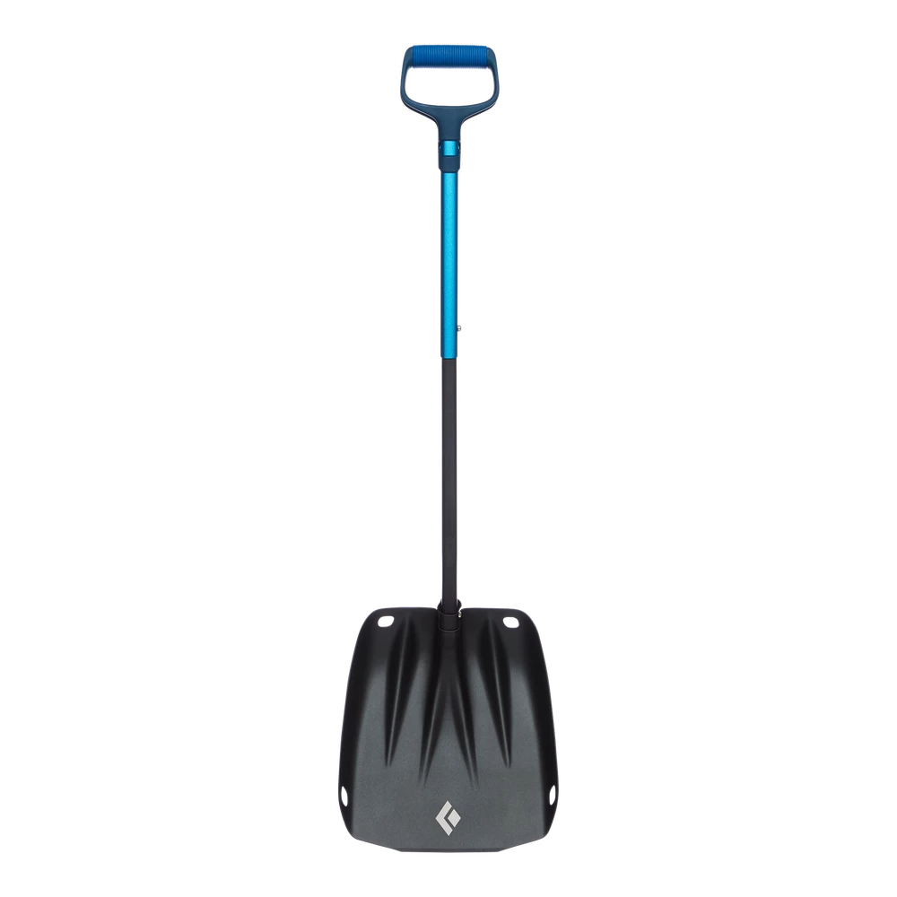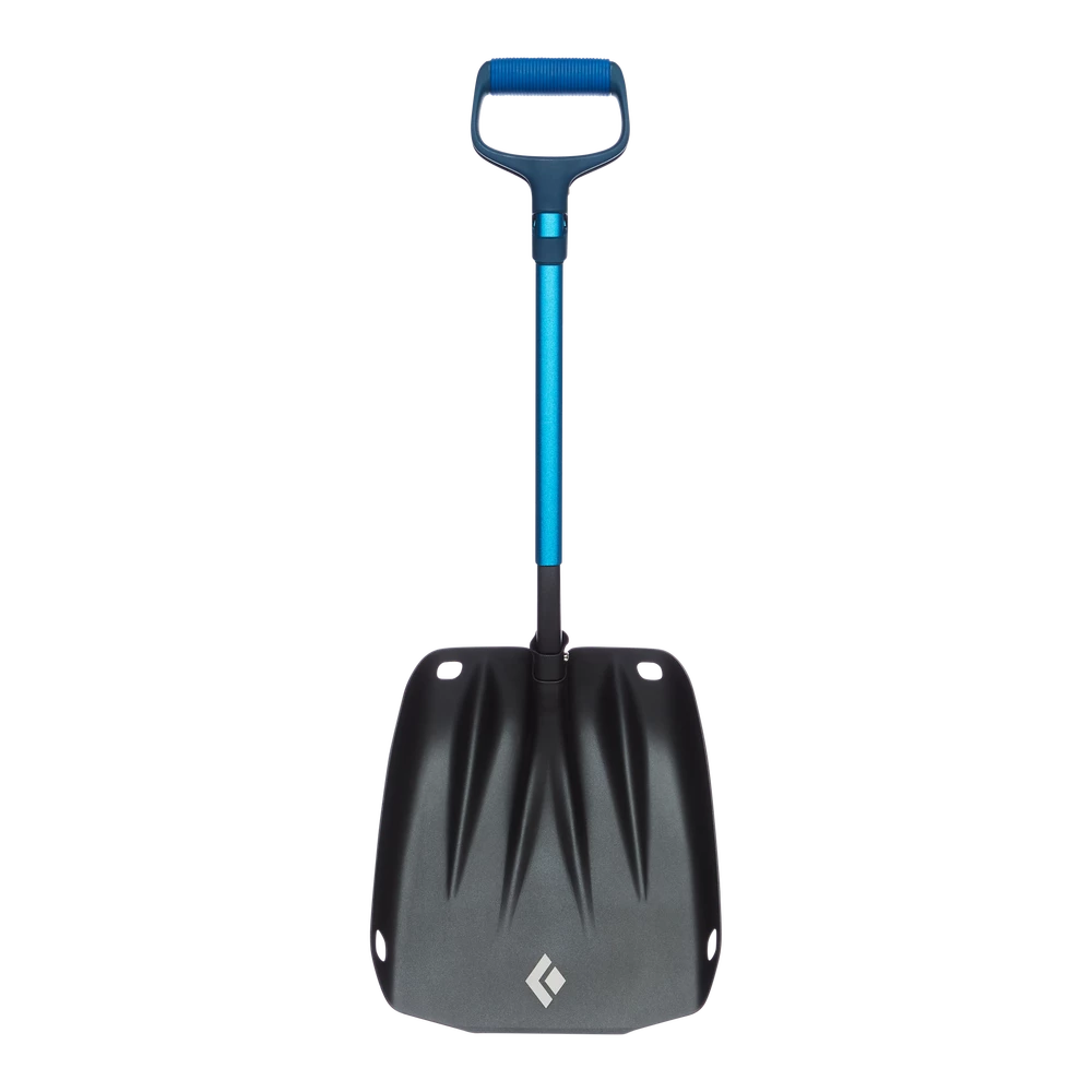 A top-of-the-line UIAA certified shovel built for professional use, the Black Diamond Evac features a unique handle that can be set up in in both standard shovel and hoe mode for digging test pits or rapid snow removal. The large blade moves lots of snow quickly, and a flat-bottom profile helps you get a good clean face on your pit wall. The updated, extendable shaft eliminates the possibility of jamming in the field while the modified large D handle increases comfort for long days involving multiple pits and speeds up digging time during an emergency.