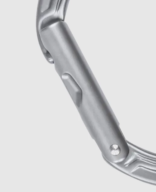 The name says it all. Innovative, robust hybrid biner with steel insert at its apex. Prevents premature wear and burrs or sharp edges.