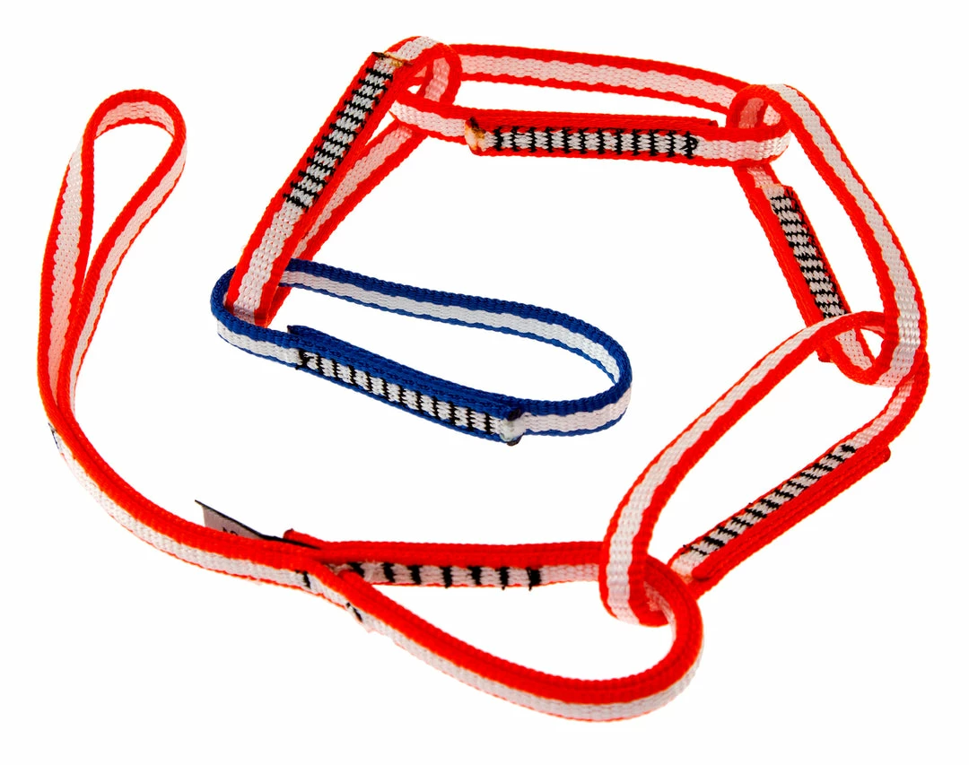 The Alpine PAS is a lightweight Personal Anchor System for fast ascents – it is over 40% lighter than the original! It is a safe, adjustable alternative to slings or quick draws that also stores compactly. Chain-link-style construction eliminates the risk of pocket failure that is inherent in daisy chains. It is made from 11 mm Monster Sling Webbing. The Metolius Alpine PAS is for use as a personal tether only.