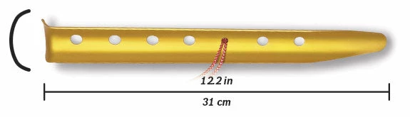 Lightweight, tough and remarkably versatile, our Snow & Sand pegs are unique. After finding most so-called snow pegs to be too soft โ they would bend in any but the fluffiest snow โ Hilleberg developed their own. Made from hardened aluminum, our Snow Pegs are built to withstand both very hard usage, including the inevitable contact with shovels, crampons and other winter gear, and very hard snow. At the same time, they are remarkably lightweight. The integrated line and hook gives you the flexibility either to bury the peg sideways in snow or sand, Deadman style, or to use it in a traditional, upright fashion.