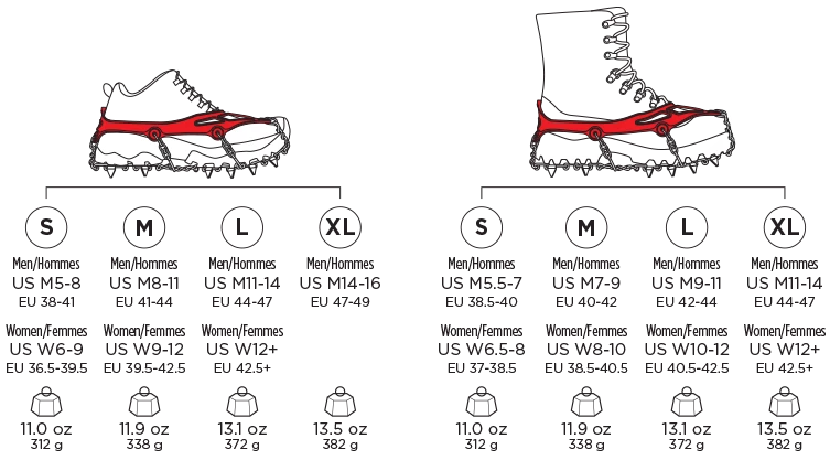 Lighter and tougher, the new MICROspikesยฎdeliver unrivaled traction on icy winter trails. With stainless steel spikes and welded chains tough enough to handle any adventure, they are now designed with an integrated toe bale and reinforced eyelets, allowing for a 50% lower profile elastomer harness.
