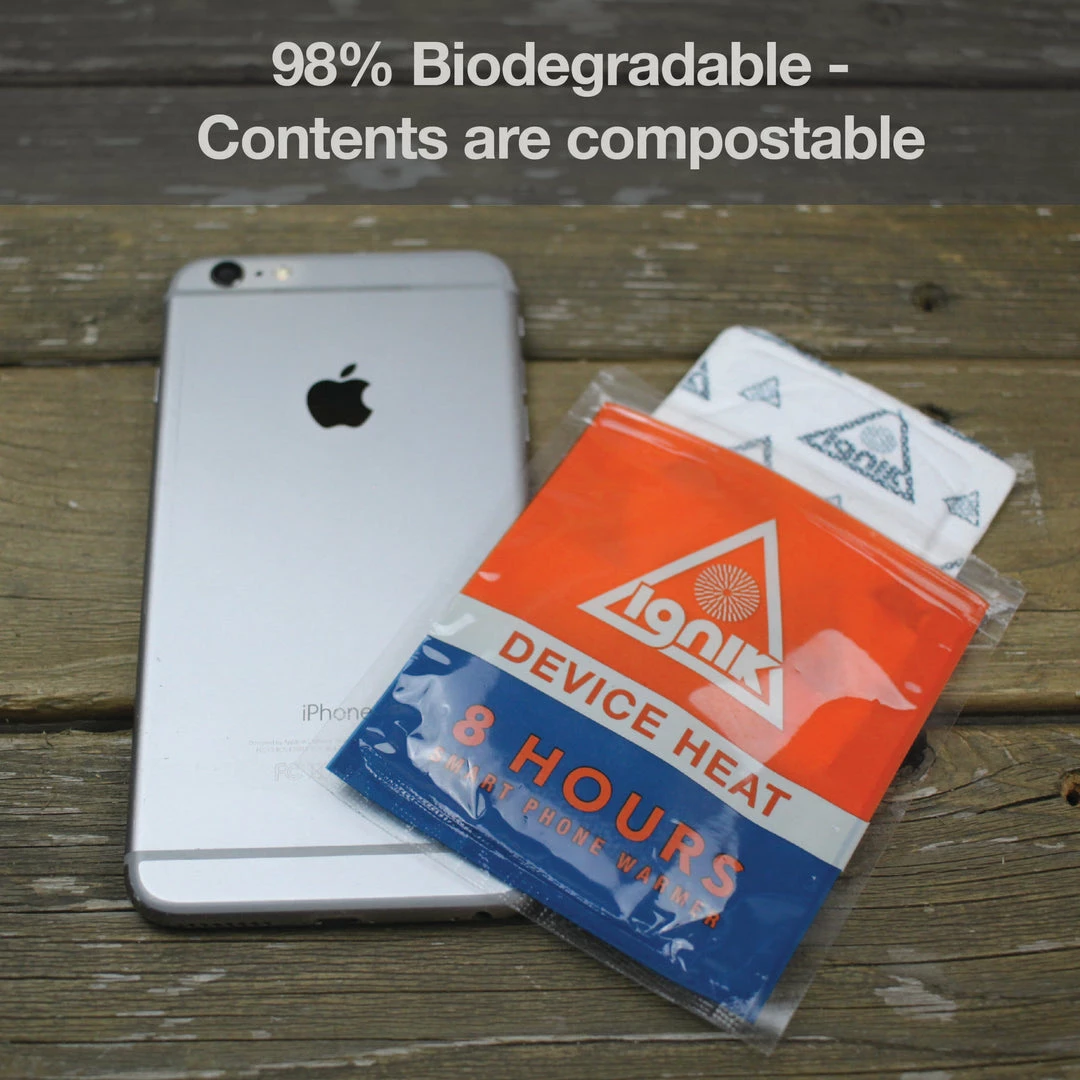 Itโs really simple to use. Just peel off the adhesive label and put a Phone Warmer over the battery of your phone prior to going out in the cold.ย ย The safe, natural air-activated warmer keeps your phone’s battery at a normal temperature, allowing your phone to function normally even in extreme cold.ย Phone unexpectedly out of juice because of the cold?ย Slap an Ignik Phone Warmer on the back of your phone, expose it to air for 5-10 minutes, and our phone warmer will gradually return your device to a normal temperature, allowing the phone’s battery to work again. It’s like a jump start for your phone!