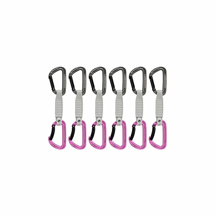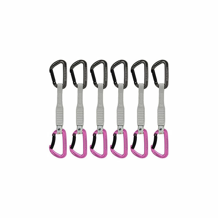 The Workhorse Keylock quickdraw is setting standards in handling and performance. The ergonomically shaped carabiner sits perfectly in your hand. Its generous geometry, the ribbed grip zone on the straight gate and the improved key lock nose allow easier clipping and unclipping. The innovative profile construction makes it extremely robust and at the same time saves weight. The polyester sling provides a firm grip; a robust sling protector keeps the lower carabiner in place and reduces wear. A bright orange indicator shows that the sling and protector are attached correctly to the carabiner. Leaving you free to focus on climbing.