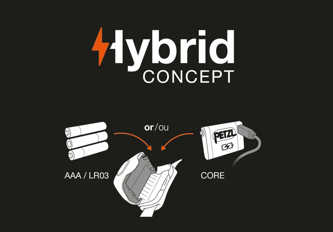 The ACTIK headlamp offers 350 lumen brightness. Multi-beam, it is ideal for dynamic outdoor activities like mountaineering, running, hiking and backpacking. Red lighting preserves night vision and prevents members of a group from blinding each other. The reflective headband provides night visibility. ACTIK comes with 3 standard batteries and is also compatible with the CORE rechargeable battery, thanks to the HYBRID CONCEPT design. Mounting accessories allow the lamp to be attached to any kind of helmet, or to a bicycle.