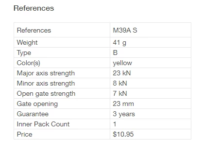 Compact, lightweight D-shaped carabiner ideal for aid climbing and racking gear; it is easy to clip, even when wearing gloves.