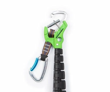 The Beta Stick Clip Evo has a redesigned head with an adjustable wire arm, allowing you to clip both solid and wire gate carabiners. The snap lock clips on the shaft make the pole length super easy to adjust and stable when fully extended.