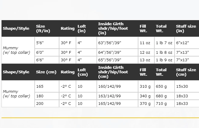 The MegaLite is cut to suit large folks so they too can enjoy the benefits of the ExtremeLite™ bags. No claustrophobia here with 64″ of shoulder girth tapering to 39″ at the foot. 12 ounces of goose down provides a temperature rating of 30°, and continuous baffles allow you to adjust the fill to suit your needs. At only 1 lb. 8 oz. this is your best friend during a summer bike trip.